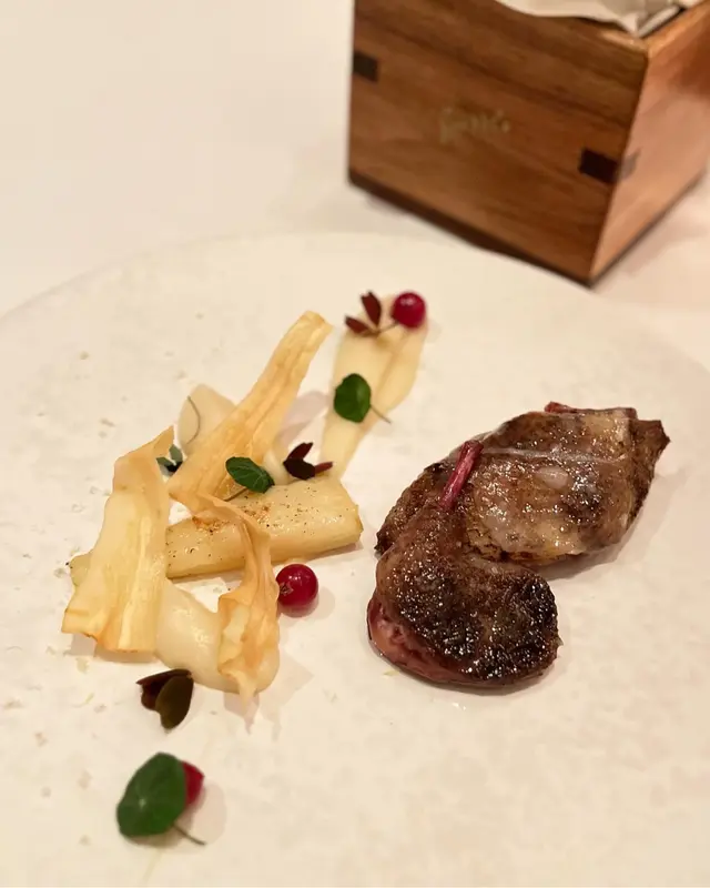 Roasted Miéral Pigeon, Parsnips in different Textures, Peanuts