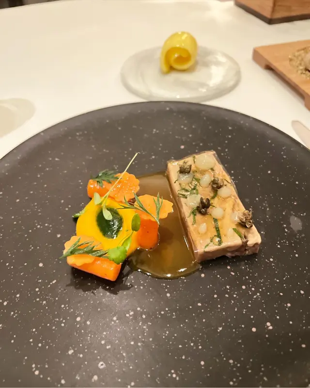 法國乳飼牛舌、沙甘筍、酸青瓜、青醬、法式酸辣汁