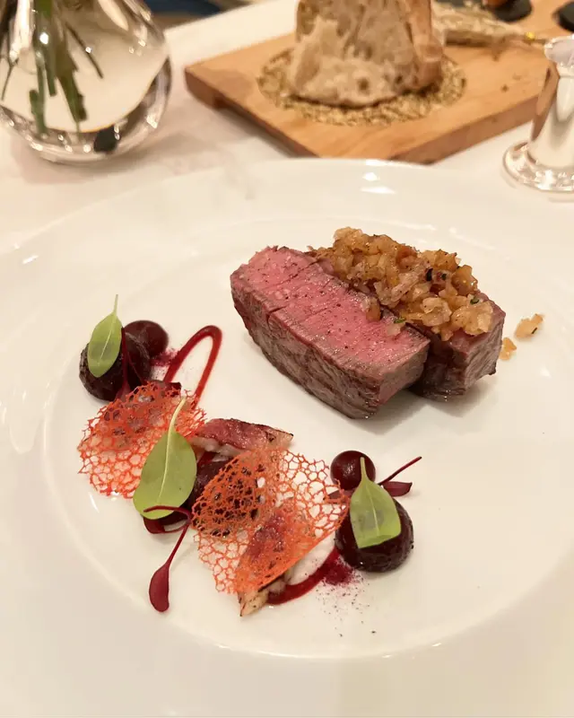 A5 Kagoshima Beef Tenderloin, Textures of Beetroot, Walnuts Condiment, Smoked Eel