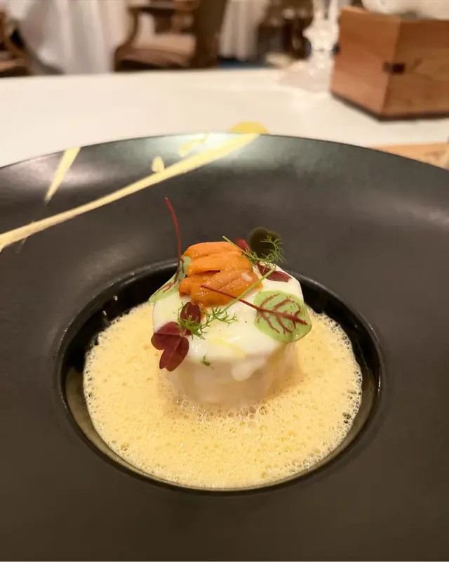 線釣海鱸魚、卷心菜、海膽、香檳牛油汁