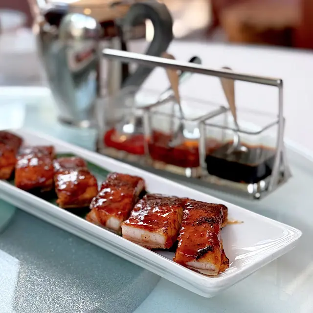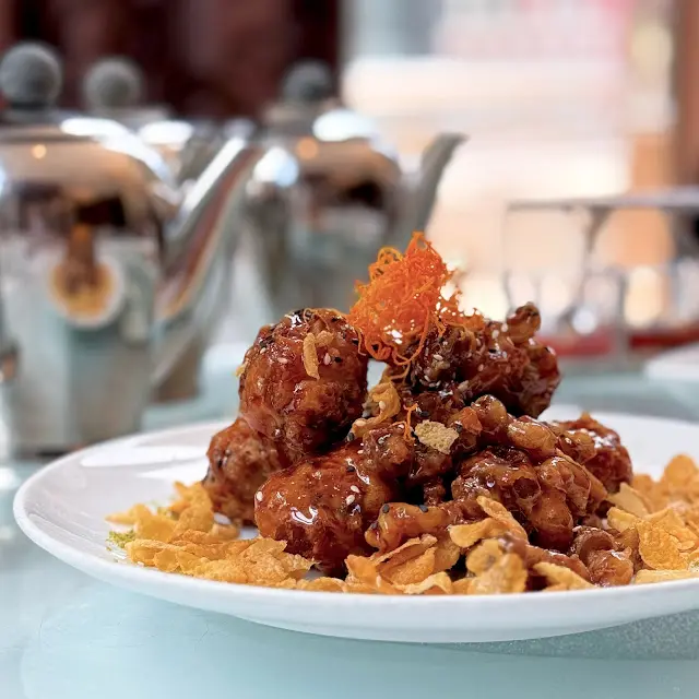 梅辣汁涼瓜脆鱈魚粒$388!用上泰國涼瓜薄片包裹著鱈魚粒和日本涼瓜片炸至金黃酥脆,裹上恰到好處的梅辣汁,吃下外脆內滑味道酸酸辣的兩件下來也沒膩感超級惹味。