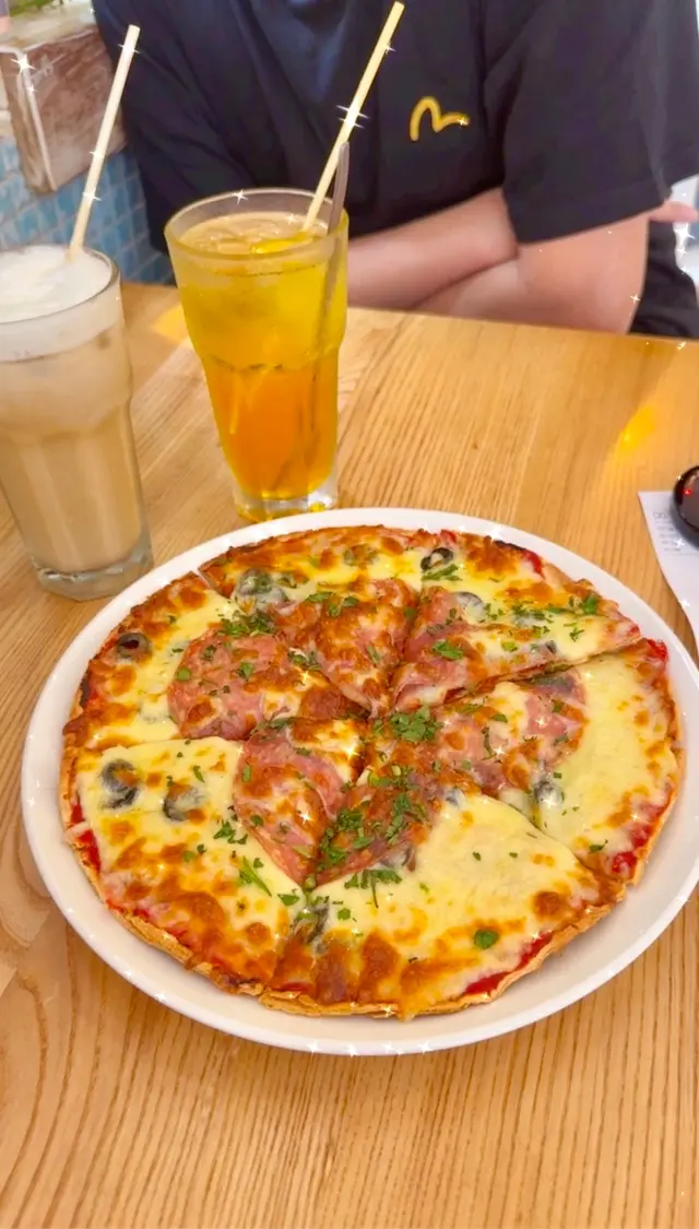 Pizza 係薄底嘅🍕手工即叫即整焗得好脆,番茄新鮮配搭意大利腸+橄欖,都係普通嘅配料,不過整體配合得唔錯,正常水平😊