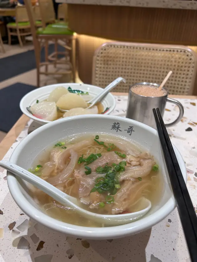 南區新商場內下午茶首選。。。蘇哥清湯腩 Nana 6一6等级42024-10-181K 浏览 关注 Happy Friday 早收工,系黃竹坑附近仲可以食埋下午茶先返屋企行去Southside 幾分鐘路程冇理由唔去高級商場內的餐廳也價高一點蘇哥清湯腩比較貼地的一間粉麵店清湯牛筋幼麵$481先喝一口湯,味道清甜;銀絲細麵,彈牙牛筋夠稔內味腩汁蘿蔔$23湯底比清湯濃,應該加左腩汁;蘿蔔大件、冇渣、清甜必食之選熱奶茶重奶味,夠熱又大杯三樣嘢加埋都系$71 好吃、夠飽、價錢合理行開商場記得食埋下午茶先走👍🏻店員禮貌好好,冇之前食評的惡人出現以上食记乃用户个人意见 , 并不代表OpenRice之观点。2分享南區新商場內下午茶首選。。。蘇哥清湯腩 蘇哥清湯腩 https://s.openrice.com/QrLT0MtyhW0检举 张贴 评分4味道4环境4服务4卫生4抵食用餐日期2024-10-18用餐途径堂食人均消费$71 (下午茶)