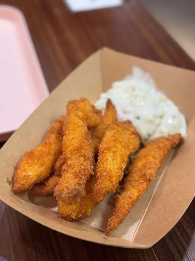 脆炸手指魚外層酥脆,內裏魚柳鮮甜,再配沙律醬,簡單卻美味十足。