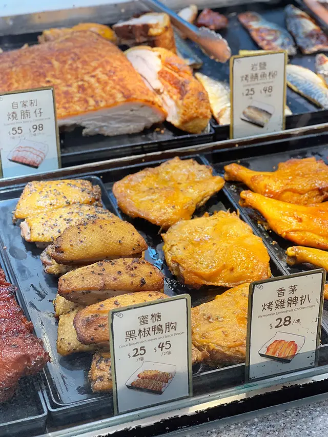 玻璃窗內放滿各式各樣的燒味任君選擇,價錢定價公道且份量十足,更有真空包裝的食物,可存放一段時間隨時食用。