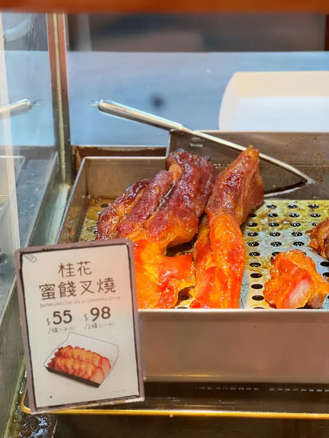 嚴選優質的梅花肉,肥瘦比例良好而不膩,表面一層油亮的桂花蜜,帶著清新的花香,與叉燒的鹹香相互交織。