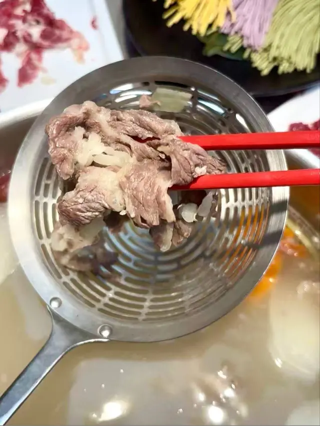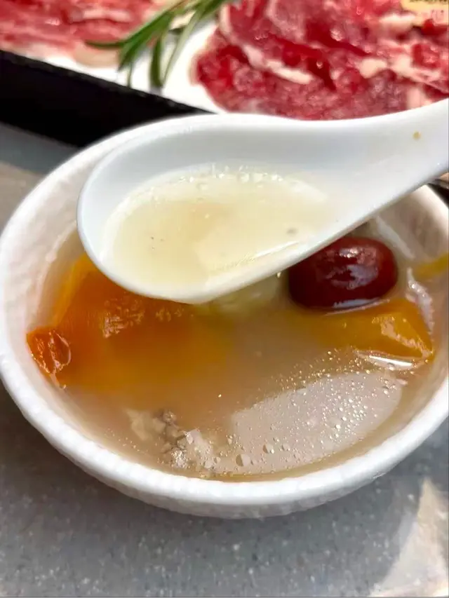 湯底用牛骨熬足8小時,清澈見底卻鮮味爆棚!飲一啖,牛骨嘅濃郁同清甜完美融合,仲有淡淡嘅芹菜香提鮮,係涮肉前嘅最佳暖胃選擇✨ 湯底仲可以免費續加,正!