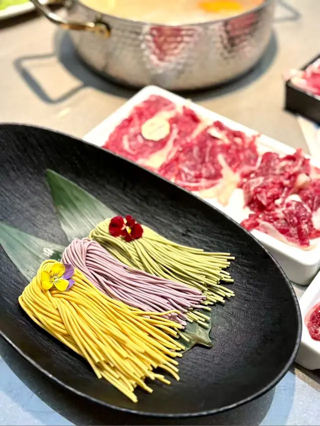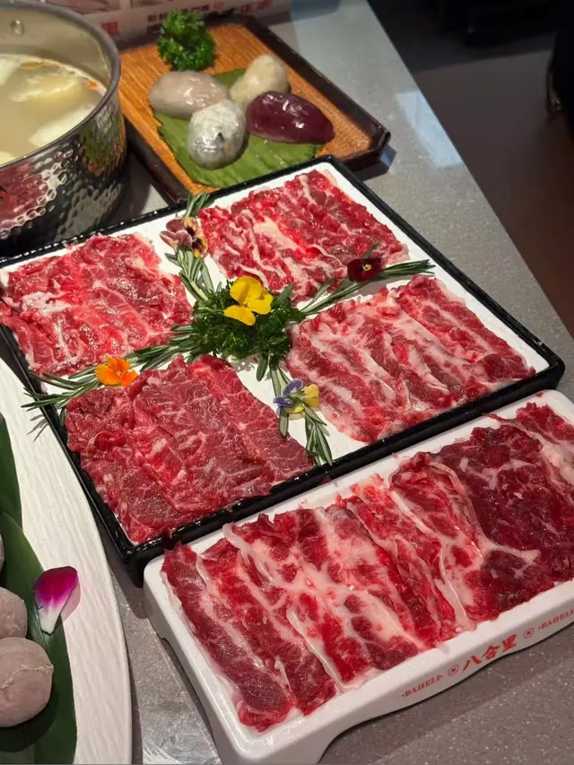 選自牛腹部位,肥瘦相間如大理石紋理~入口即化嘅油脂香令人一試難忘!記住「三吊水」涮法:一吊血水、二吊酸性、三吊纖維,肉質更嫩滑💯
