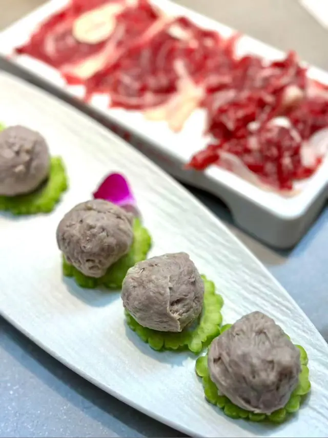 即係牛背脊嘅長條肉,脂肪少但肉味濃郁!涮10秒後口感嫩滑得嚟帶少少韌性,配潮汕沙茶醬係經典絕配,鹹甜交織超上癮~