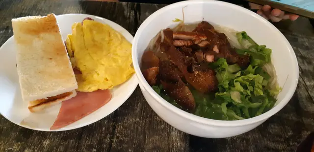 哩個常餐都好多野食,有蛋有腸有火腿,有多士,仲有個香茅豬扒金邊粉,真係唔知食邊樣先好