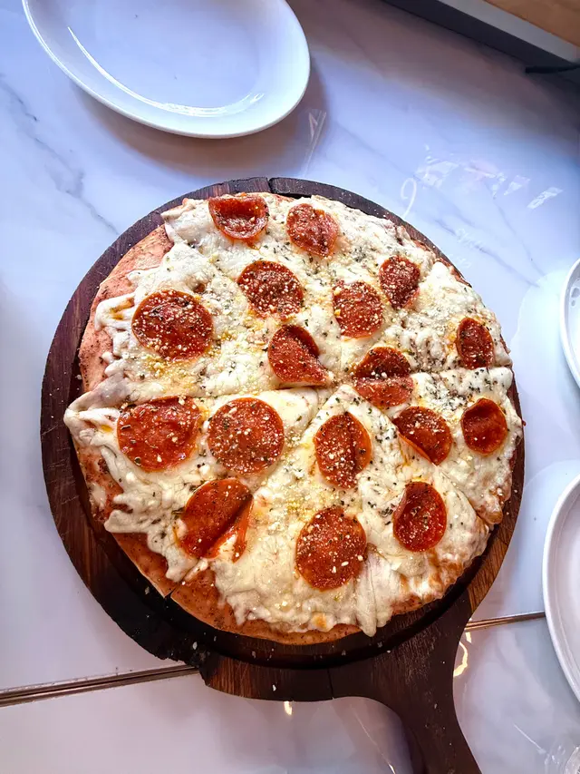辣肉腸薄餅同樣份量驚人辣肉腸薄餅,這道菜的餅底薄脆,餡料豐富。肉腸的香氣與輕微的辛辣味相得益彰,讓這道薄餅風味十足。特別是搭配的融化芝士,增添了濃郁的口感。不過,對於不太能吃辣的朋友來說,稍微的辣味可能會讓他們感到不適,建議在點餐時提前告知廚師調整辣度。