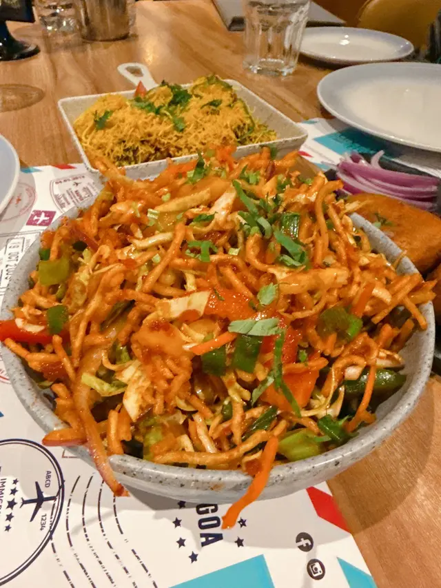 尼個印度中式炒麵,好似明星炒麵又香又脆有少少辣,配菜勁多料,有黃椒、紅椒、紅蘿蔔同椰菜絲等等。