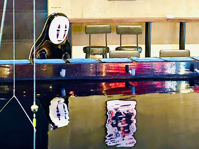 蝦池比想像中大,有無臉男公仔在池邊,造型仿似在觀賞池中小蝦,非常可愛。