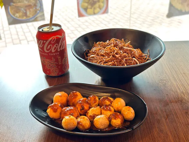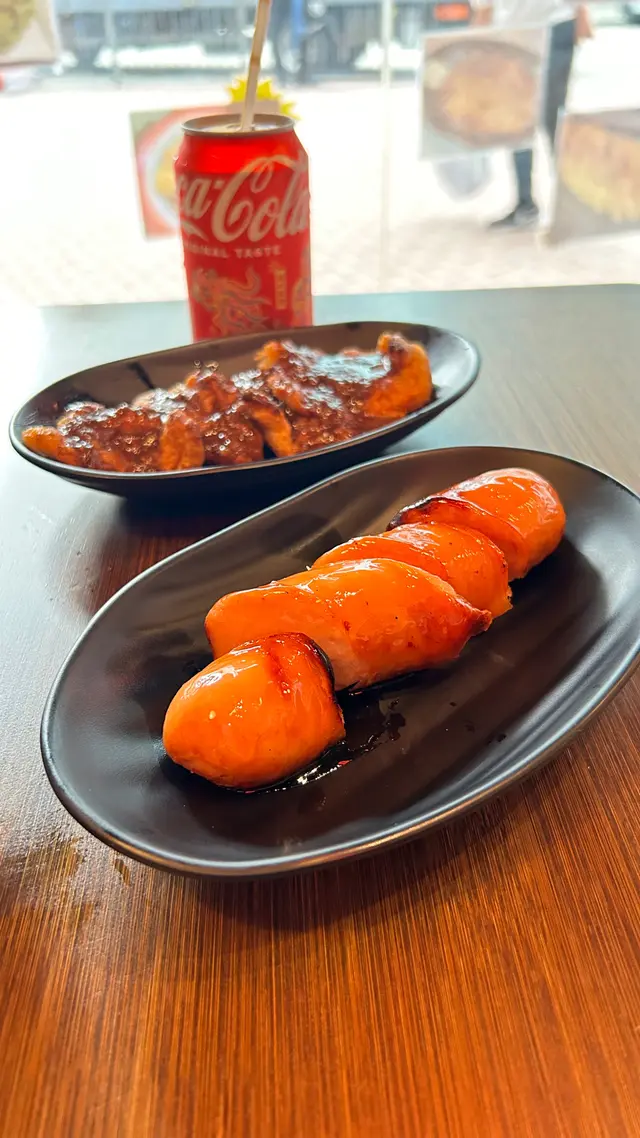 釣上黎既蝦可即燒即食,可㨂白灼/鹽焗,我地㨂左鹽焗,自己親手釣上黎既蝦特別好食,仲點左幾款街頭小食,有咖哩深海/陳皮魚蛋、魚肉/豬肉燒賣、豉油皇炒麵、燒司華力腸一齊食。