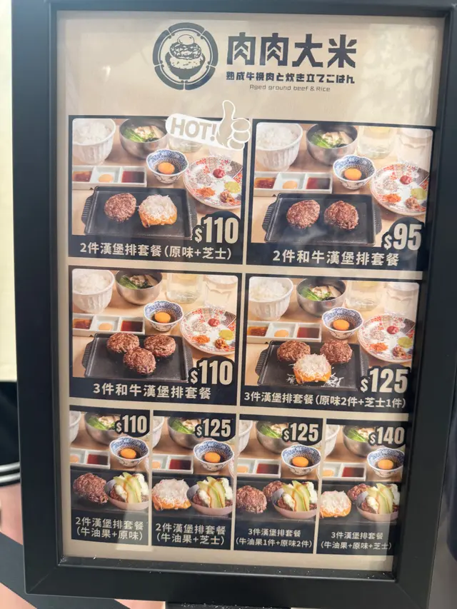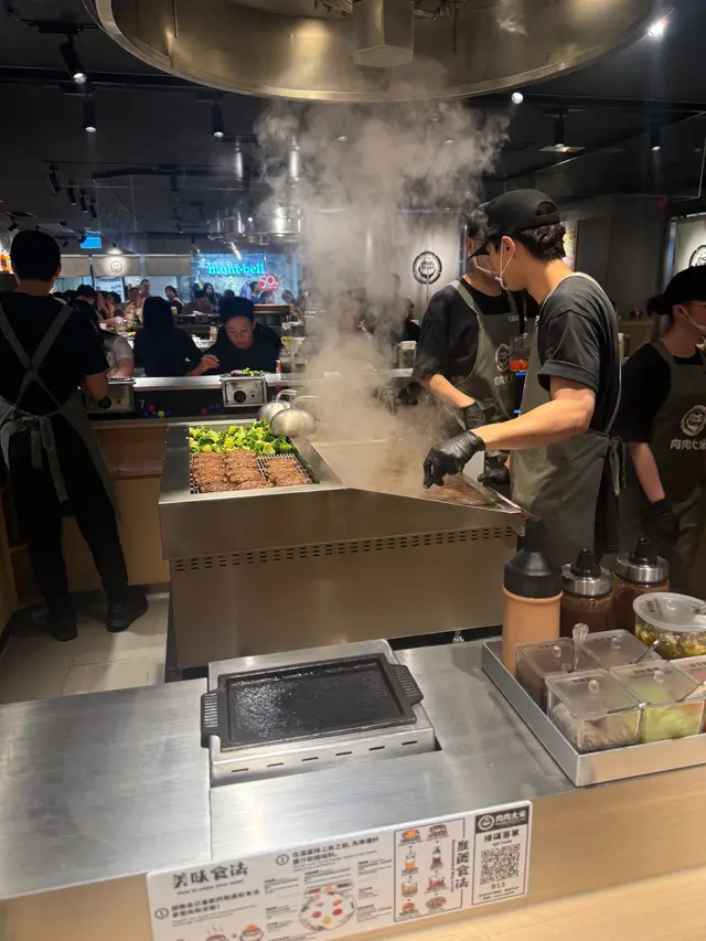 店員會在客人面前搓多份漢堡扒,並用烤爐煎熟,同時會烤熟西蘭花作為配菜,並可隨時請店員添加西蘭花。漢堡扒肉質鮮嫩,可自行夾成一份份,並配上各種醬汁食肉,個特別推介以燒肉汁及芥末醬混合,食起來有層次並另有一番風味