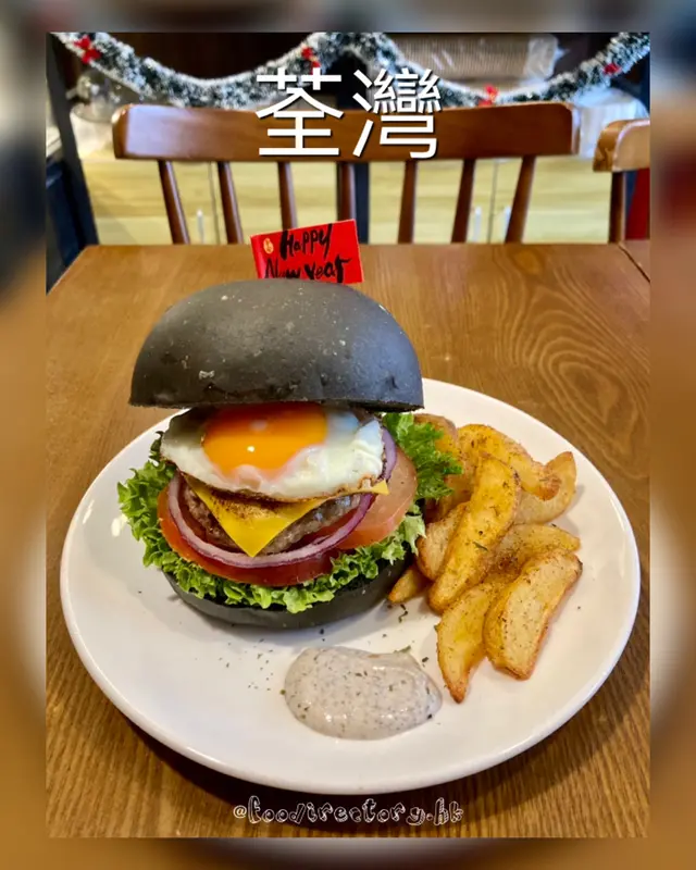 漢堡夾心嘅太陽蛋🍳、芝士🧀、和牛🐮、番茄🍅、紫洋蔥🧅同生菜🥬層層分明,顏色鮮豔 🤗 望到已經胃口大開~ 夾滿餡嘅漢堡好厚身,竹炭麵包咬落乾身,中間食材好有原材味道,太陽蛋🍳、芝士🧀同和牛🐮特別有香煎、烤過嘅香味,有水分又唔會太溜,調味啱啱好~ 薯角夠晒熱氣 👍🏻 配有少許黑松露醬,好香口!