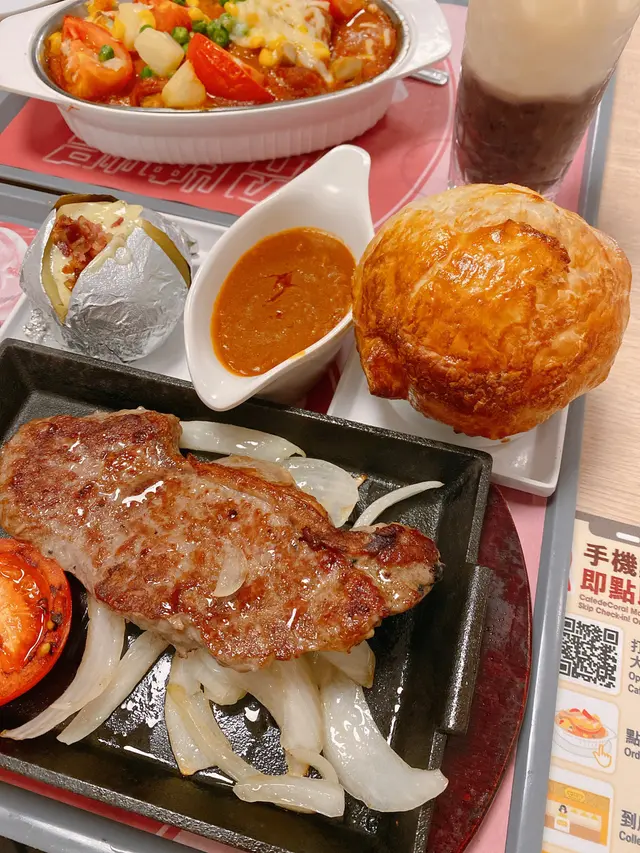 ❣️食物:咁平嘅價錢,竟然可以食到鐵板餐,有酥皮湯,紅豆冰,蔬菜,焗薯,牛扒!而且質素都唔錯,當然唔可以同幾百蚊嗰啲比,呢個餐只係需要$71姐!焗豬扒飯就唔使講,質素保持水準!❣️👍🏻