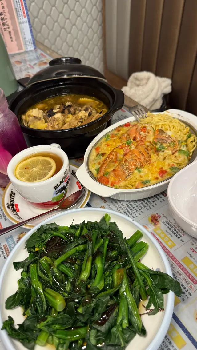 仲有油菜、粟米豬骨湯、+$9利賓納雜果冰🍹、+$3蜂蜜柚子茶🍯~