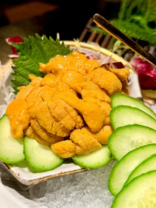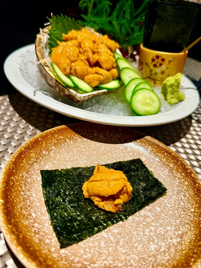 原板海膽刺身100g:原來100g份量好多,海膽鮮甜濃郁,入口即溶,和紫菜一齊食又有另外一個層次,極品享受。