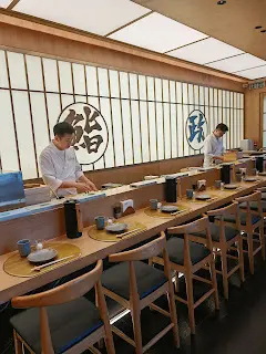 面積不大,全店只有一張壽司枱,可容12人,必須訂位。