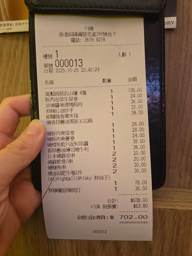 串燒店價錢非常親民,大部分低至$10,真係好抵食!🎉如果你有生日,記得提前預訂,仲可以有免費甜品或酒!🥳 總括而言,呢度唔單止食物好味,環境又放鬆,真係個聚會好地方。下次再嚟,我一定要再食嗰隻高壓鍋蒸乳山蠔!👏🥰