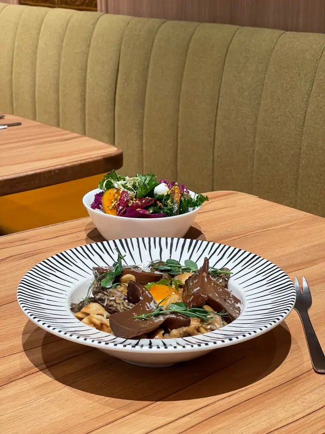 朋友食素揀咗呢個pasta 牛肝菌好chewy 有大量栗子 貓耳朵粉又裹滿醬汁 佢食完之後 已經飽咗大半😅