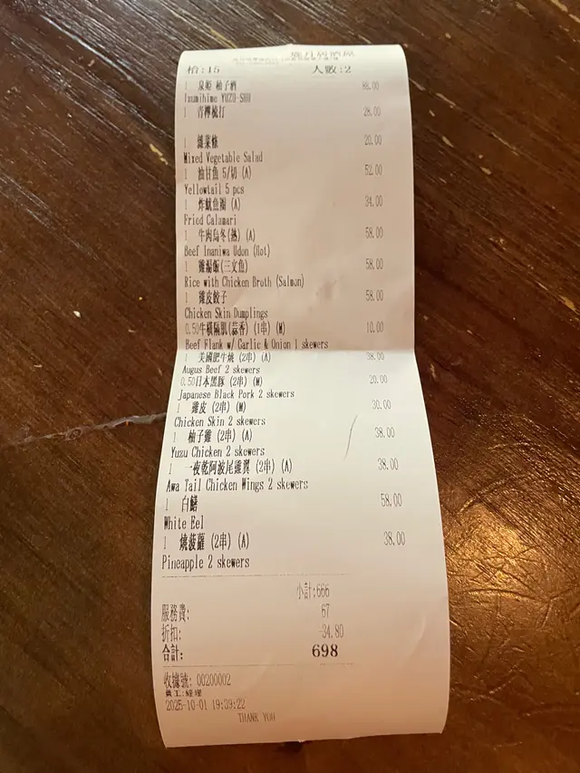 我哋兩個人食左咁多都唔使$700,真係好抵食,而且呢到啲職員好主動同好好服務。今晚去左尖沙咀行街,然後去左食呢間朋友介紹的串燒,餐廳座位好闊落,一啲都唔會覺得迫。
