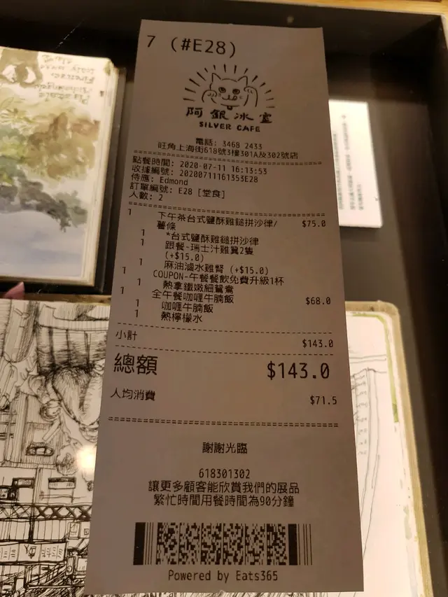 又食又拎加充滿特色的冰室 MaggieYum等级42020-08-16144 浏览 关注 在朗豪坊附近無啦啦發現 一幢叫上海街 618的建築物,當日给文藝市集吸引了我內裏逛一逛,原來在三、四樓有不少食市。比隻招牌 貓貓吸引去了阿銀冰室,對面是一間很懷舊的文具舖,餐廳入面也同樣擺放著舊式文具擺設,十分有特色。下午茶台式鹽酥雞金透拼沙律一上枱時熱辣辣,鹽酥雞鎚鬆脆可口,外脆內軟,令人懷念台灣味道。沙律方面,有青瓜薯仔等,爽爽脆脆,感覺新鮮, 配上熱辣辣的雞槌, 降低了一份熱氣感。咖哩牛腩飯份量十足,牛腩炆得淋淋的,咖哩有南洋風味。瑞士汁雞翼+麻油鹵水雞腎這是跟餐加錢的小食, 一點也不hea,瑞士汁雞翼炆得淋淋的,十分入味。 一向不吃內臟的我, 也忍不住吃多幾口雞腎,口感十分爽脆, 滲著滿滿的麻油味, 真心推介。埋單之後,還可以任揀小禮物,真是 又食又拎大滿足麻油鹵水鴨腎瑞士汁雞翼咖哩牛腩飯下午茶台式鹽酥雞鎚配沙律1以上食记乃用户个人意见 , 并不代表OpenRice之观点。赞好分享又食又拎加充滿特色的冰室 阿銀冰室 https://s.openrice.com/QrLT0SDev00检举 张贴 评分5味道5环境4服务4卫生4抵食用餐日期2020-07-11等候时间10 分钟 (堂食)人均消费$70 (下午茶)
