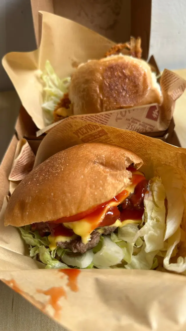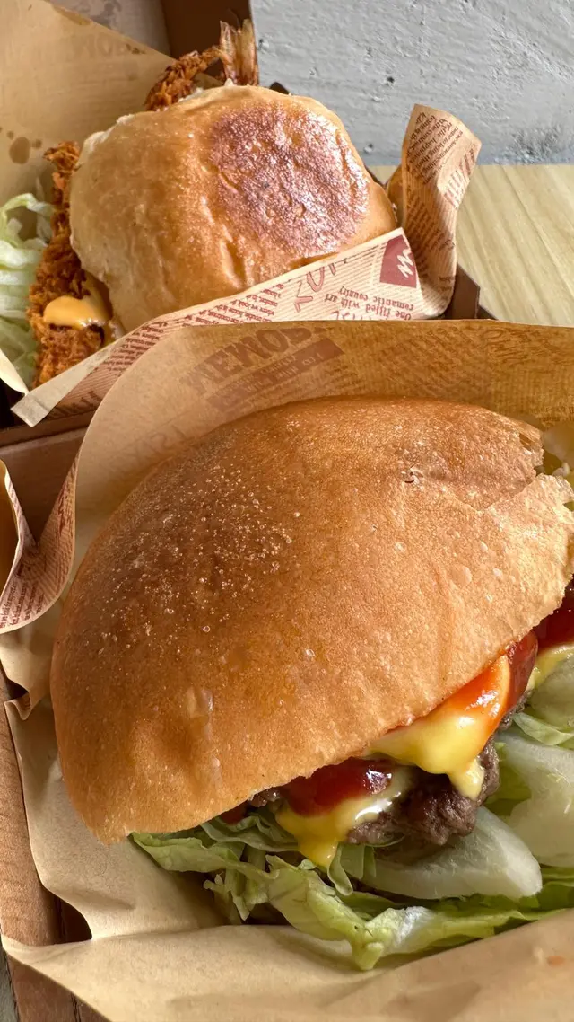肉餅超彈牙:咬落唔係連鎖店嗰種粉感,明顯食到牛肉粒粗獷質感,外層微脆內裡爆肉汁!雙層疊埋厚度啱啱好,唔會壓扁個包又夠喉