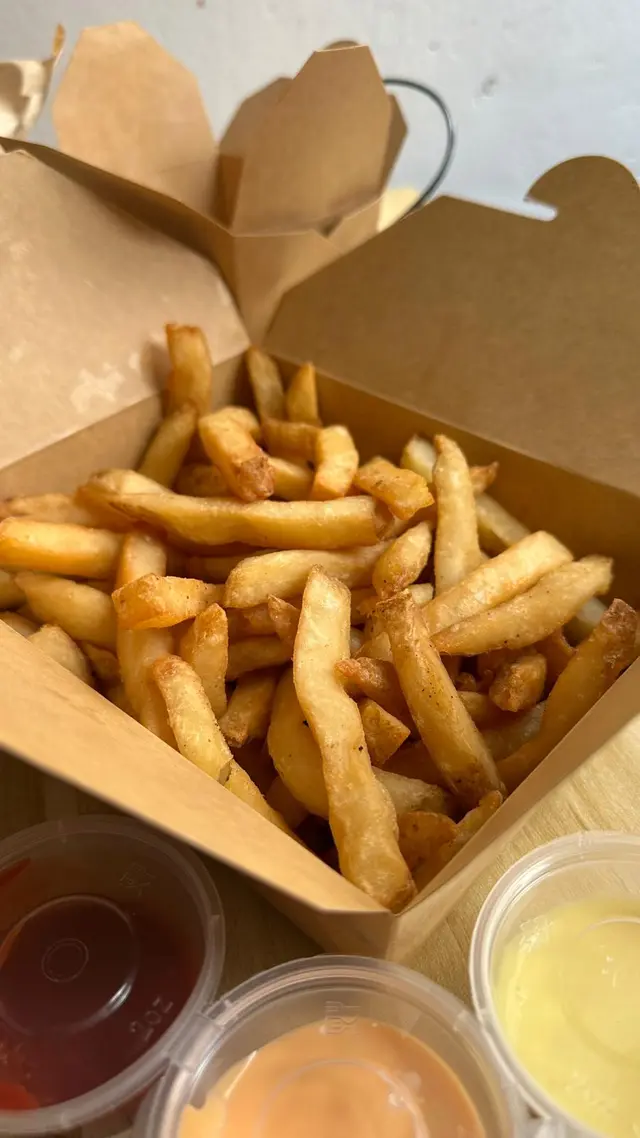跟餐嘅粗薯條落咗蒜粉同香草,脆到似食緊薯片!有埋黑松露醬,個friend搶住蘸到清碟...