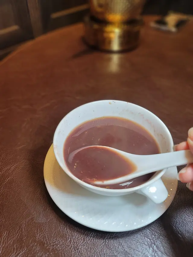 甜品陳皮蓮子紅豆沙,紅豆經過精心處理,呈現出細膩的沙狀質感。