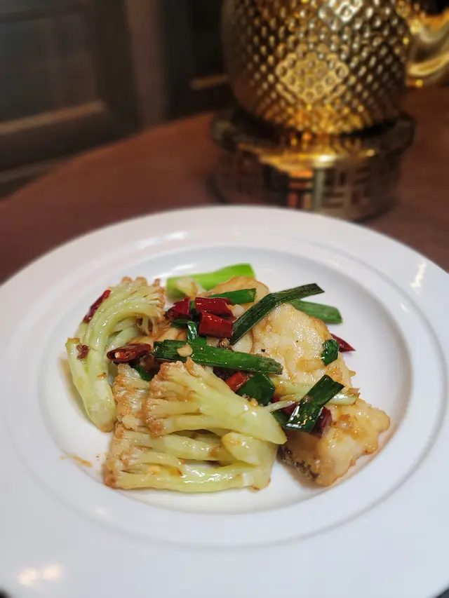 乾燒椰菜花龍躉同樣表現出色,兩大片厚身龍躉煎至外香內嫩,魚肉帶有天然的膠質口感。