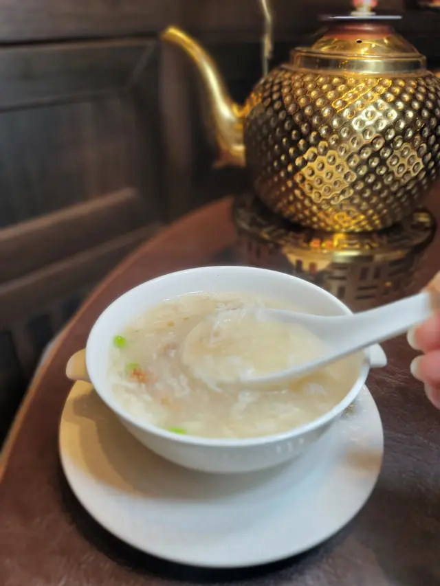 金腿蟹肉燴冬蓉羹的蟹肉份量豐盛,每一匙都能品嚐到蟹肉的鮮甜,配以金腿的鹹香與軟綿的冬蓉。