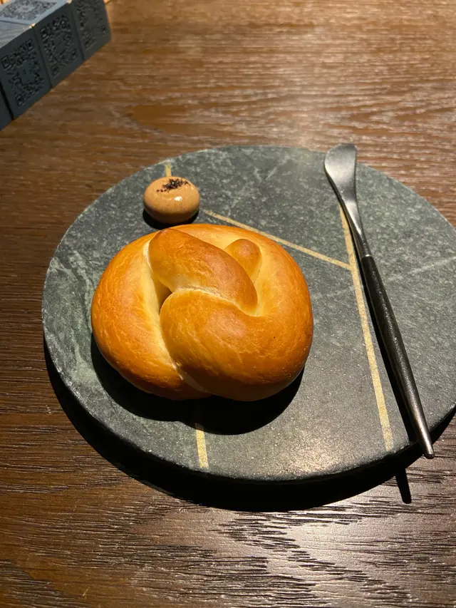 先上餐包,樣子已很美,碟亦係。麵包皮有點煙靭,很香牛油味及麥味,唔搽旁邊的黑松露醬都好好味。👍🏻👍🏻👍🏻