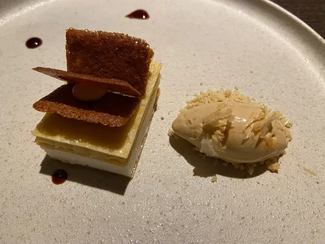 甜品是以豉油做成的雪糕及蛋糕,有創意。口感軟滑,味道十分之咸,不好味。👎🏻👎🏻👎🏻