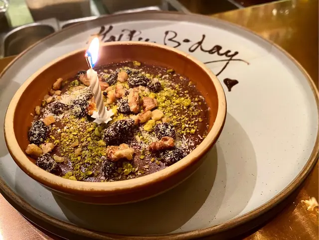2款點品都偏甜,corn brûlée 係有啲特別既。終極嗜糖者先好點chocolate pudding,質感似一pat比較稠既朱古力榛子醬再加提子乾核桃pistachio碎,實在甜到漏…
