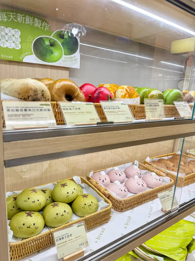 麵包同bagel,仲有小菠蘿包,都畫上好可愛嘅公仔樣,真係少女心爆發,佢想即刻買晒佢哋😍😍。