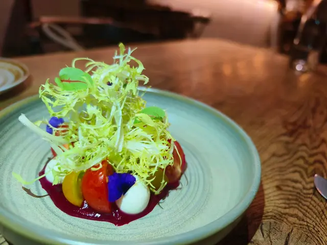 迷你馬蘇里拉芝士、櫻桃番茄及菊苣沙律菜配蜜糖芥末紅菜頭汁
