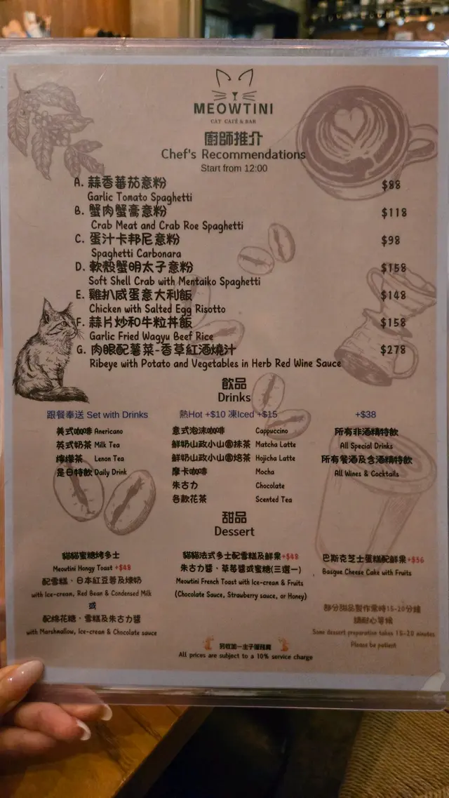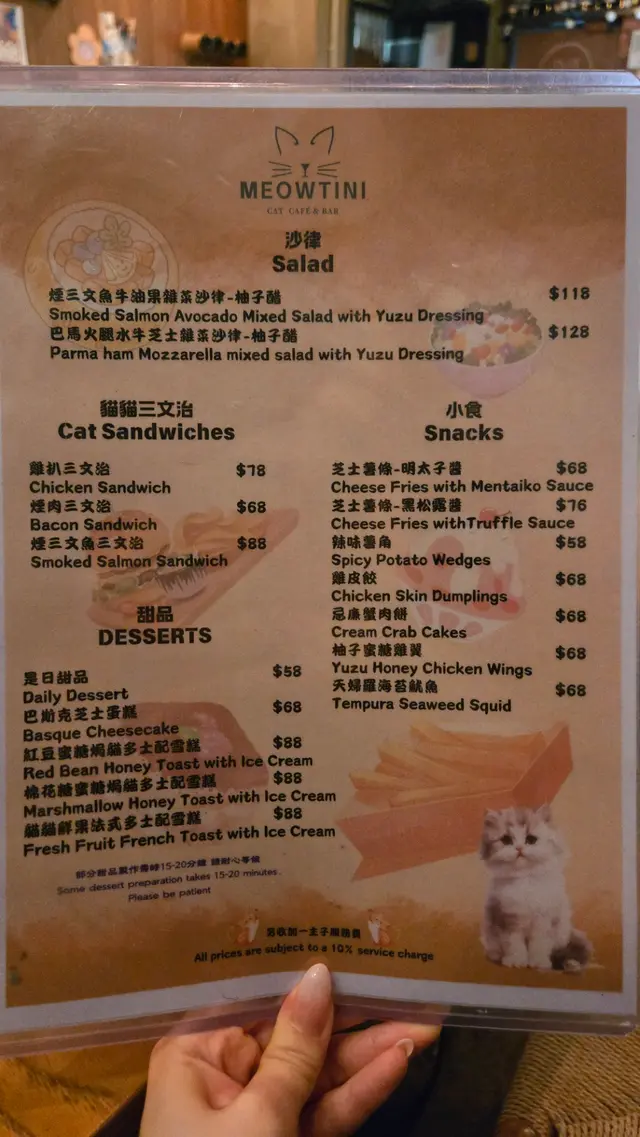 餐廳好就腳,喺朗豪坊隔離~ 低消150/pp但輕鬆達標🤣 店員態度非常友善,唔會趕人走唔會比壓力,仲會主動同你傾計添,例如講下你摸緊嗰隻貓咩習性。(出面有好多貓cafe店員feel得到佢只係打份工, 唔係太鍾意啲貓, 對貓對人都態度惡劣。但呢度唔係☺️幾好幾好) 環境亦唔錯幾舒服,啲貓都好乖,仲會行過嚟比你摸下🤭。