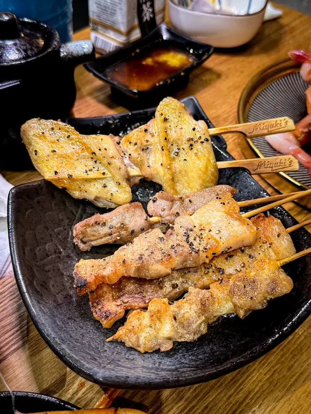 🍢串燒豬腩肉、鹽燒雞軟骨串、鹽燒雞中翼、串燒牛舌。