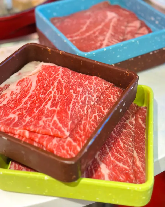 食完雞就開始打邊爐,牛肉有兩款,A5薩摩牛大米龍同安格斯牛頸脊,都係無限追加❣️A5薩摩牛大米龍好好食,油脂均勻,肉質鮮嫩😋