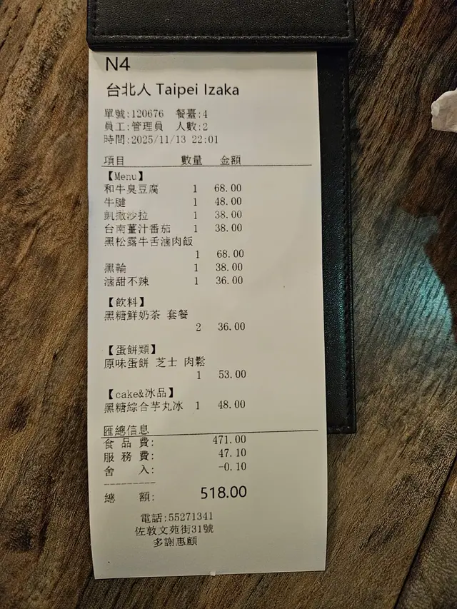 台北人|佐敦 極具台式特色的創意小店 gigitsy等级32025-11-20 关注 店內走台式文青風格,坐位不多但氣氛親切,員工服務有禮。這次點了幾款主打菜式,整體表現不俗。 推薦「黑松露牛舌滷肉飯」,滷汁香濃,牛舌厚切軟嫩,黑松露香氣明顯;「和牛臭豆腐」炸得外脆內嫩,臭味經處理後變得香口惹味,配料豐富;「台南薑汁蕃茄」酸甜開胃,是不錯的前菜。 甜品「黑糖綜合芋圓冰」芋圓Q彈,黑糖味濃,冰爽清新。飲品「黑糖鮮奶茶」奶味重且黑糖香突出,味道不會過甜,值得一試。 整體餐點水準穩定,價錢中等,適合三五知己聚會,環境舒適,有一秒飛台灣的感覺。以上食记乃用户个人意见 , 并不代表OpenRice之观点。赞好分享台北人|佐敦 極具台式特色的創意小店 台北人 https://s.openrice.com/QrLT0YqTV00检举 张贴 评分5味道5环境5服务5卫生5抵食用餐日期2025-11-13等候时间20 分钟 (堂食)