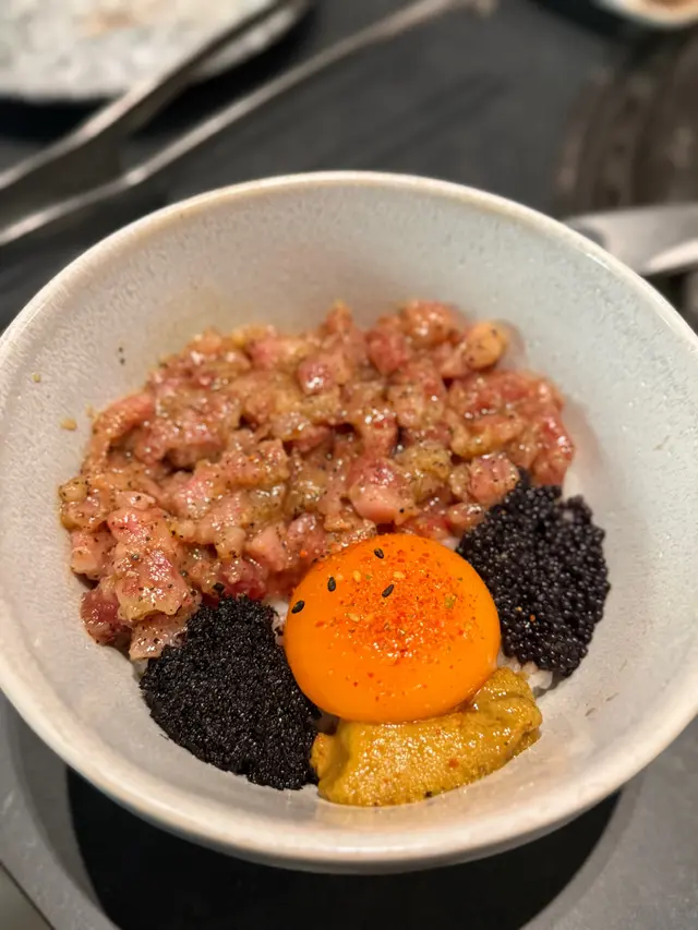 ✅真理丼。必點的呢個飯!A5和牛他他、魚子醬、黑松露、海膽、蛋黃的配搭,打卡係好豪華🥳但略嫌味道太豐富太多種,唔係好和諧,海膽的鮮都食唔出🥲入口有蛋黃同和牛,當然滑溜。味道上尾韻都帶啲松露香。