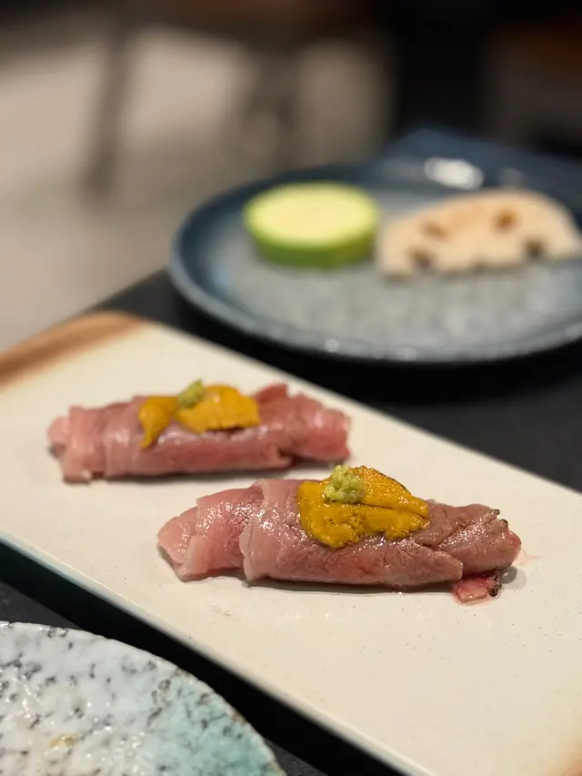 ✅✅日本A5和牛海膽卷。和牛輕輕燒熟,卷起一卷,面頭加上海膽,一啖食又鮮又肥美,好幸福😚
