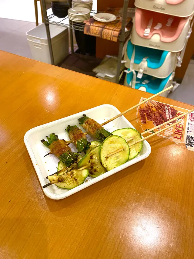 採用充滿肉汁的豚五花部位,燒至焦香撲鼻,小葱的清香令整體感覺不油腻。