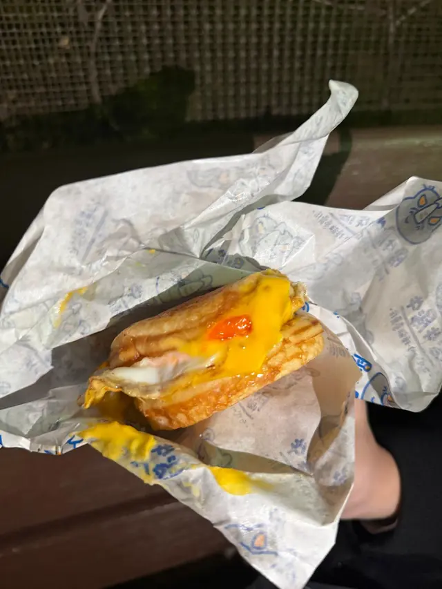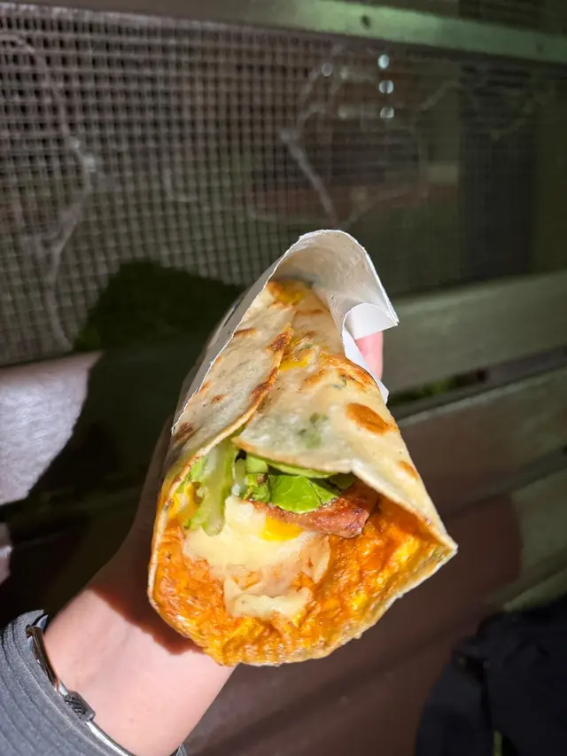 蛋餅就比捲餅濕潤,內層鋪滿好綿密嘅薯泥、醬燒肉片同芝司🥓。成個口感好飽滿。