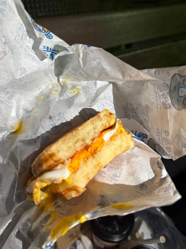 外層係鬆餅嚟,口感濕潤鬆軟加埋芝士同半熟蛋一齊食🧀🍳,鹹甜交集,食完都唔會膩。