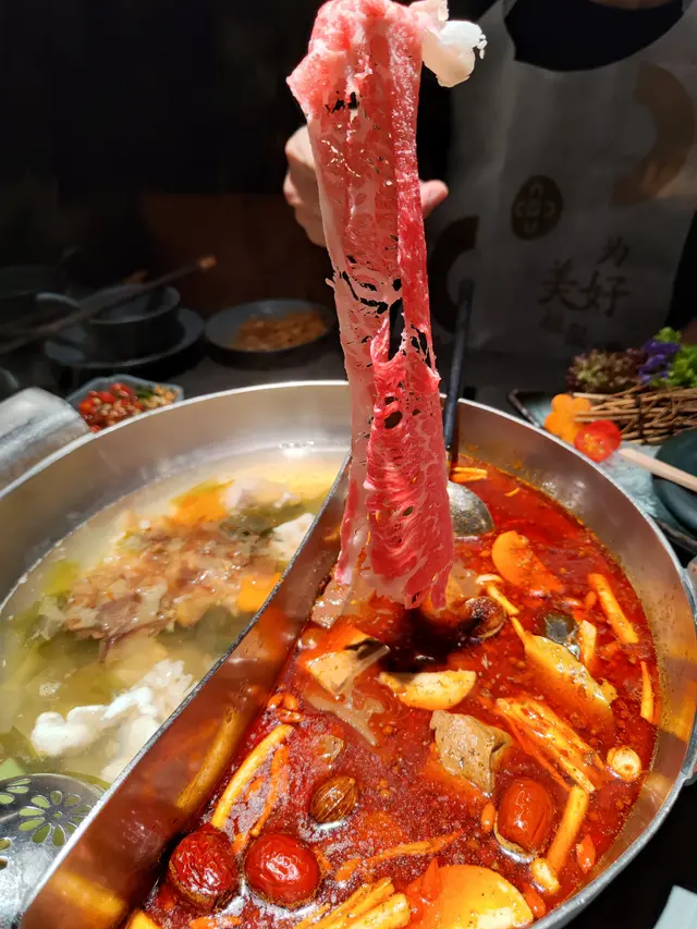 另一款是經典麻辣湯底,裡面還有鴨血、豆腐,越滾越麻香辣,十分過癮。