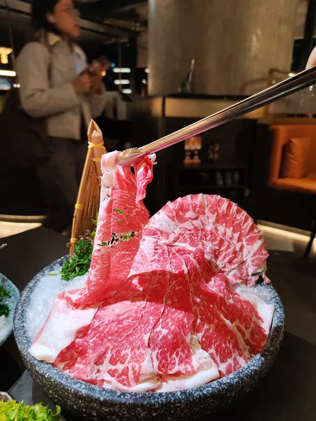 牛肉薄切,油花均勻;