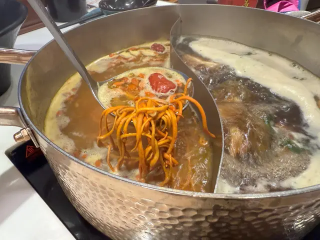 湯底方面,我們選了鴛鴦鍋,分別是養身雞湯,及新推出的皮蛋芫荽肉片湯。兩款湯底都相當足料。